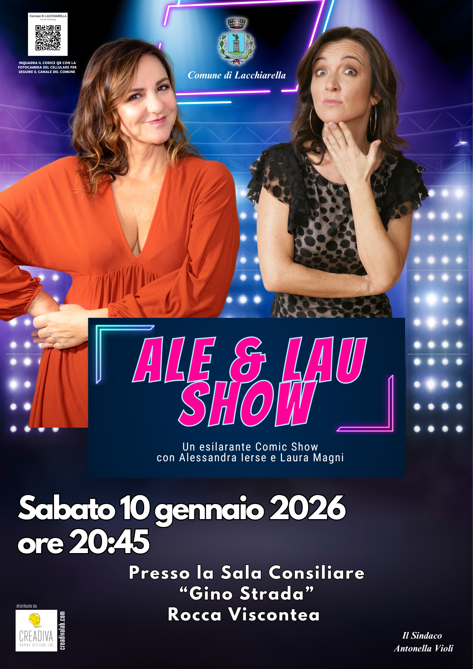 SI RIPARTE CON I GRANDI EVENTI CULTURALI e il primo appuntamento dell'anno è all'insegna della comicità e del divertimento con ALE & LAU SHOW , uno spettacolo di cabaret interpretato dal duo femminile formato da Alessandra Ierse e Laura Magni, che portano in scena i loro personaggi più iconici!