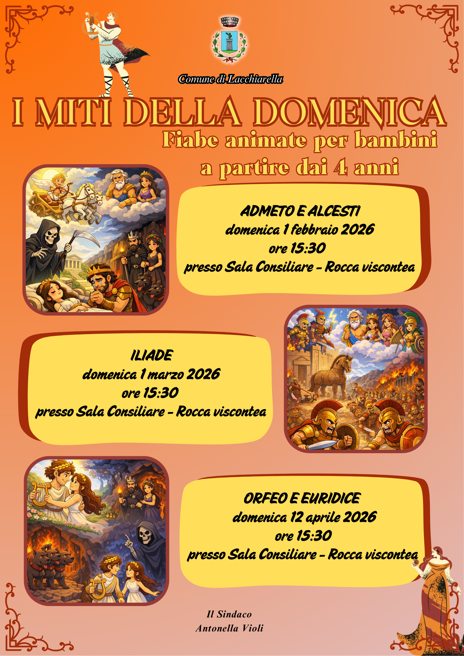 I MITI DELLA DOMENICA attendono i bambini e le loro famiglie in Sala Consiglio - Rocca Viscontea - a partire da DOMENICA 1 FEBBRAIO alle ore 15.30.