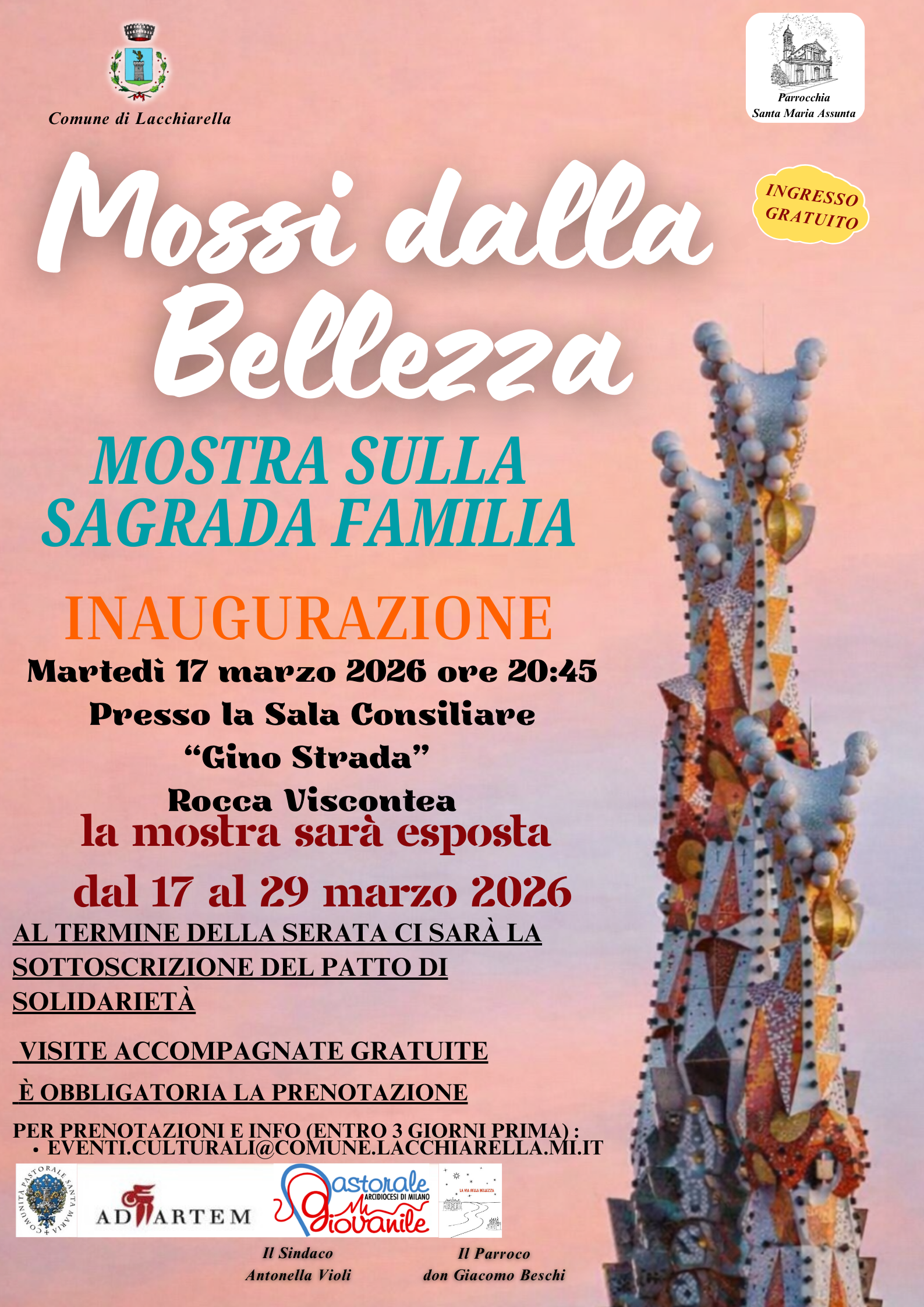 L'Amministrazione Comunale in collaborazione con la Parrocchia Santa Maria Assunta organizzano "Mossi dalla Bellezza. Mostra sulla Sagrada Familia".